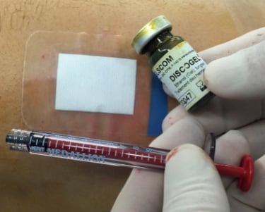 The treatment of the herniated disc by Discogel consists of injecting this radiopaque gel under fluoroscopic control in the intervertebral disc.